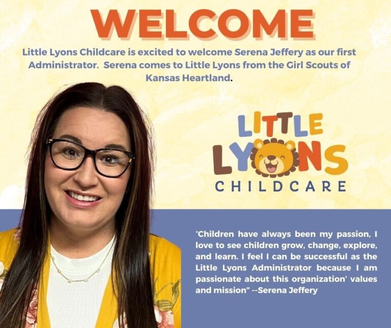 Little Lyons Childcare is excited to welcome Serena Jeffery as our first Administrator. Serena comes to Little Lyons from the Girl Scouts of Kansas Heartland.